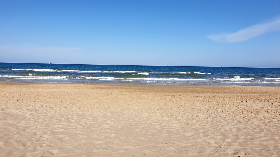 The beach itself is as mentioned long and perfect for long beach walks. The sand is golden and the water clear and even has a Blue Flag. There are many restaurants along the way and a few shops on the promenade.